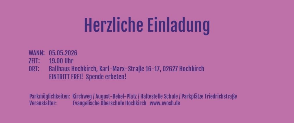 Die Evangelische Oberschule in Hochkirch zählt zu den jüngeren freien Oberschulen Sachsens. Mit Beginn des Schuljahrs 2010/11 konnten wir am 09. August 2010 mit einer 5.Klasse den Betrieb aufnehmen und arbeiten derzeit als staatlich anerkannte Ersatzschule mit 150 Schülern und 16 Lehrern in je einer Klasse aller Stufen mit je max. 26 Schülern.