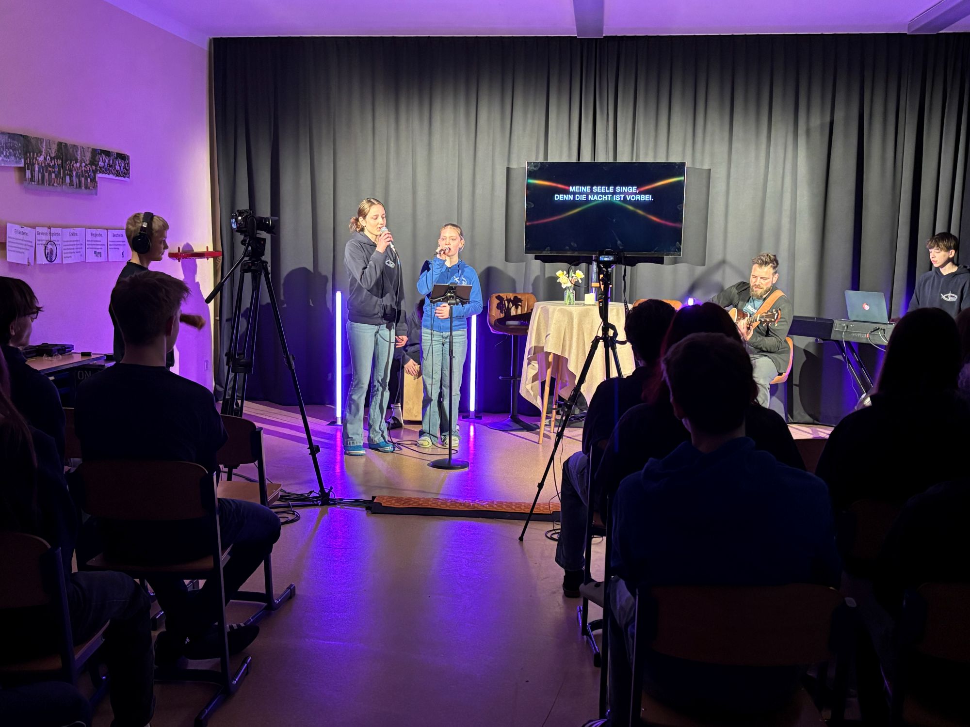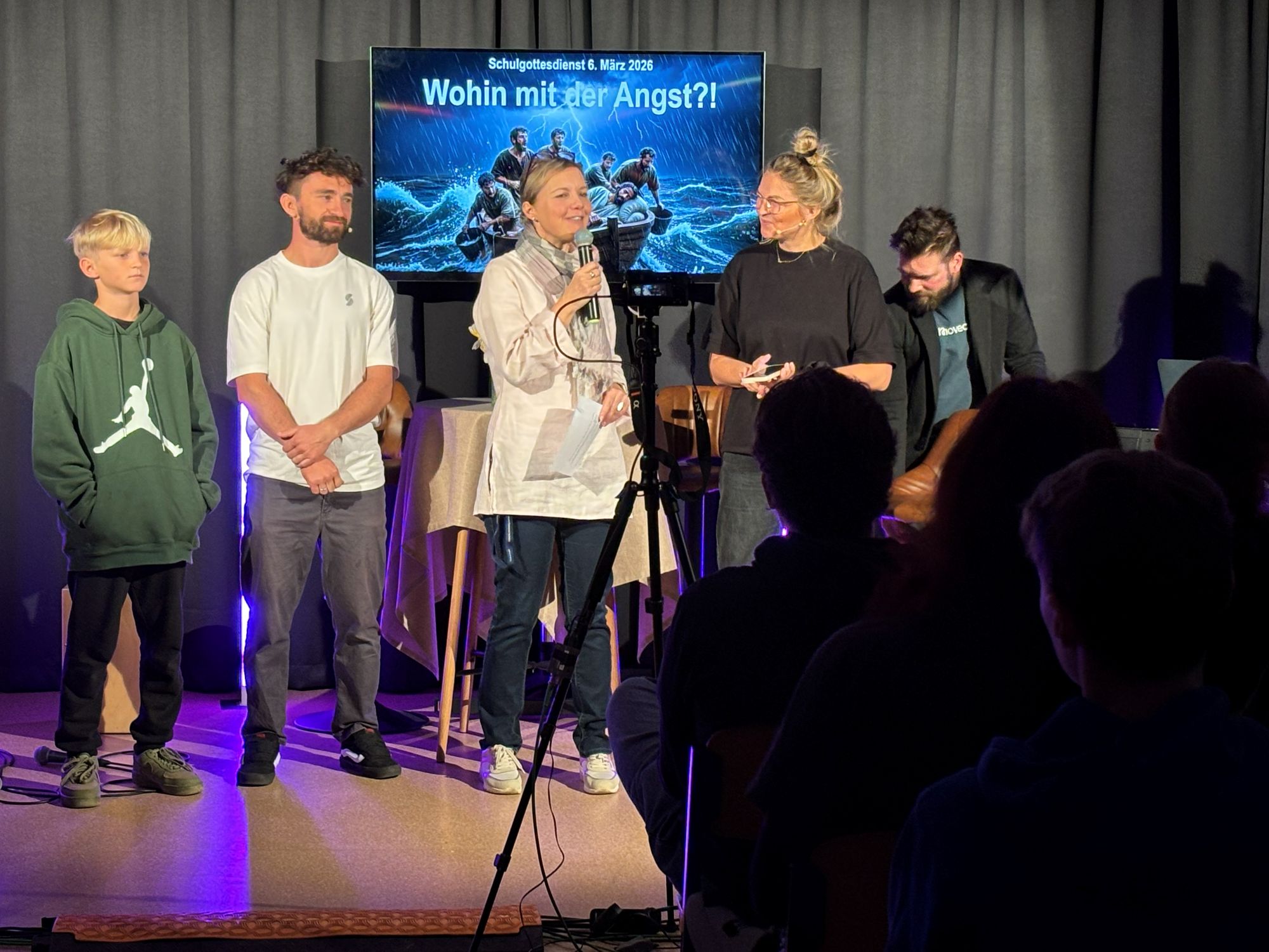 Ein ganz besonders großes Dankeschön geht heute mal wieder an unser geniales Technikteam unter der Anleitung von Max Hauschild. Die Jungs begleiteten den Gottesdienst technisch in sehr hoher Qualität, sorgten für Ton und Präsentation und haben die Veranstaltung sogar aufgezeichnet.
