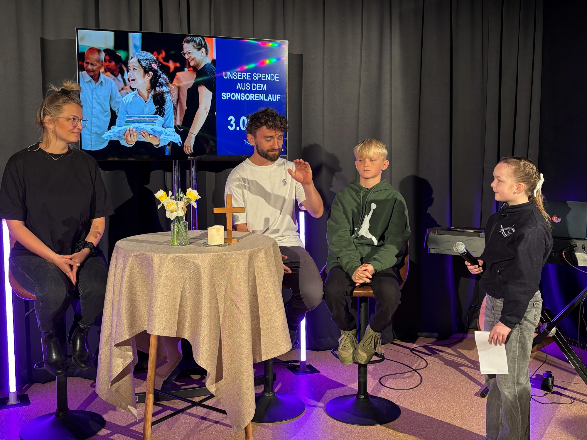 Im Anschluss nahm sich die junge Familie viel Zeit für die Fragen unserer Schüler. Diese hatten sich im Vorfeld Gedanken gemacht und wollten mehr über das Leben in Kambodscha, über die Arbeit der Missionare und über die Situation der Kinder dort erfahren. Die persönlichen Einblicke machten deutlich, wie wichtig Unterstützung und Hilfe für viele Familien und vor allem für die Kinder vor Ort sind.